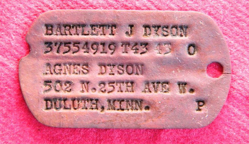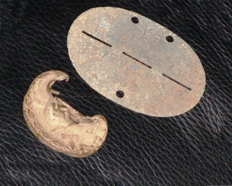 6o) Primo piano del piastrino del soldato statunitense. Chissà come lo perse e come venne a trovarsi insieme ai britannici. Probabilmente fuggì, o fu liberato, dal campo di concentramento tedesco di Renicci, nei pressi di Cortona