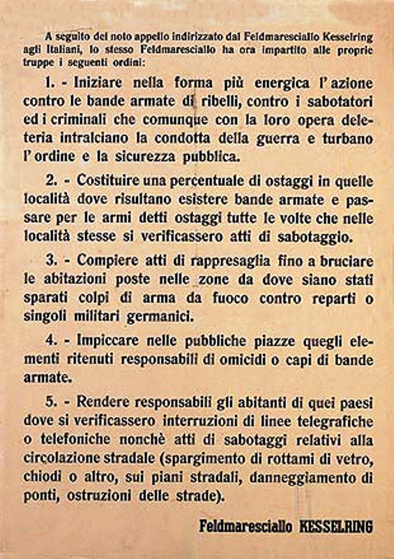 A proposito di Kesselring, è bene ricordare che, nel maggio del 1947, fu condannato a morte per i numerosi eccidi compiuti sotto il suo comando (fu pure responsabile dei massacri delle Fosse Ardeatine e di Marzabotto), ma la pena venne commutata in ergastolo e, nel 1952, fu rilasciato “per motivi di salute”, ancora osannato dai nazifascisti. Dopo la sua liberazione dichiarò di non essere pentito dei crimini che aveva commesso e che, anzi, gli avremmo dovuto fare un monumento. Bellissima l’epigrafe, dettata a sua ignominia dal grande Pietro Calamandrei (antifascista e uno degli estensori della Costituzione Italiana), incisa su lapidi affisse nel palazzo comunale di Cuneo, a Sant’Agnese di Montepulciano e a Sant’Anna di Stazzema: “Lo avrai / camerata Kesselring / il monumento che pretendi da noi italiani / ma con che pietra si costruirà / a deciderlo tocca a noi. / Non coi sassi affumicati / dei borghi inermi straziati dal tuo sterminio / non colla terra dei cimiteri / dove i nostri compagni giovinetti / riposano in serenità / non colla neve inviolata delle montagne / che per due inverni ti sfidarono / non colla primavera di queste valli / che ti videro fuggire. / Ma soltanto col silenzio dei torturati / più duro di un macigno / soltanto con la roccia di questo patto / giurato fra uomini liberi / che volontari si adunarono / per dignità e non per odio / decisi a riscattare / la vergogna e il terrore del mondo. / Su queste strade se vorrai tornare / ai nostri posti ci ritroverai / morti e vivi collo stesso impegno / popolo serrato intorno al monumento / che si chiama / ora e sempre / Resistenza”.
