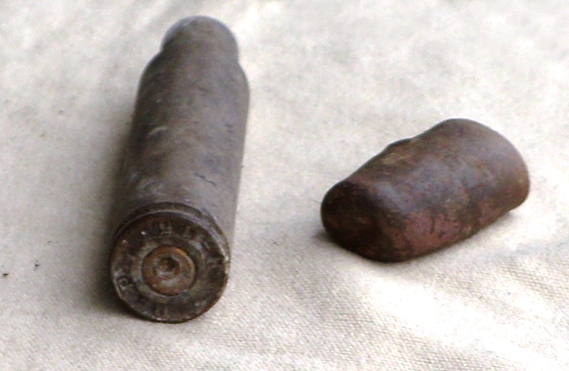 Foto n 20, 21, 22) Durante la ritirata piccoli nuclei tedeschi si appostarono, in pratica, su ogni poggio che trovavano, preferibilmente se potevano controllare le vie di transito, anche di secondaria importanza come quella, antichissima, che passa dai resti del Castello di Pietramala e da Molin de’ Falchi. I Partigiani cercarono di contrastarli e scacciarli, lo provano i reperti che abbiamo trovato: bossoli del 91 (quello fotografato è marcato 1915), della rivoltella “Bodeo” (ne mostriamo il fondello), pallottole sparate, sia con la rivoltella, sia con un antiquato Vetterli calibro 10,35. Vicino alle rovine delle case è emerso pure il poggiaspalla del fucile–mitragliatore Breda 37. Il 14 luglio del ’44 i tedeschi applicarono alla lettera le disposizioni di Kesselring e fecero la solita strage, sul posto e nella vicina frazione di S. Polo