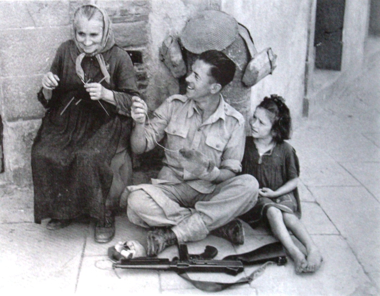Dopo l’armistizio dell’otto settembre 1943, le Forze Alleate ebbero il problema di utilizzare il nostro Paese quale ulteriore branca della morsa che doveva stringere da ogni parte la Germania nazista. Ma, in proposito, si scontrarono le opposte opinioni degli inglesi, che volevano attaccare nell’Alto Adriatico e mettere le mani sui Balcani, e degli americani, che non volevano grane con l’Unione Sovietica. L’Italia e la sua popolazione furono schiacciati dalle opportunità politico–militari delle grandi potenze e dovettero subire quasi altri due anni di guerra, di massacri, di bombardamenti e di rovine. Dopo lo sbarco in Sicilia del giugno del 1943, infatti, allo scopo di ritardare l’avanzata Alleata, Kesselring convinse Hitler a non dare ascolto a Rommel, che voleva attestarsi subito sull’Appennino tosco–emiliano e romagnolo, e istituì una serie di linee di difesa sfruttando la conformazione del nostro territorio. Solo nel maggio del 1944 gli Alleati e i resti del Regio Esercito riuscirono a superare la linea Gustav, ma a noi costò la distruzione dell’Abbazia di Monte Cassino e loro erano ancora nel meridione d’Italia, poi ci fu lo sbarco di Anzio, la liberazione di Roma, la lenta avanzata verso nord con i bombardamenti e i combattimenti valle per valle, paese per paese e colle per colle, con il coinvolgimento dei civili e i dolori che la brutale pennellata del passaggio del fronte provocò, in pochi mesi, ai nostri nonni e padri; sofferenze e privazioni superate in parte solo alla fine degli anni ’50.