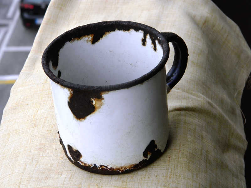 Foto n. 34) Sempre da Catenaia, zona Monte Castello, proviene la tazzina inglese, trovata insieme ad un’altra, in pessime condizioni e forata da un proiettile, vicina a resti di giberne piene di caricatori per il Lee–Enfield e ad alcuni bottoni con in rilievo lo stemma dei Tudor