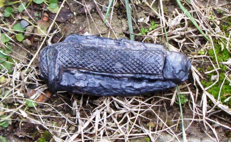 Foto n. 17, 18) Monte Filetto, il primo baluardo dell’Alpe di Catenaia che s’incontra provenendo dalla Val Tiberina; per liberarne la cima dalle postazioni di mitragliatrici tedesche i britannici spararono centinaia di colpi di mortaio e, nella piazzola dov’erano appostati, abbandonarono i coperchi dei contenitori delle granate. Alcuni hanno eccezionalmente conservata intatta la vernice; sui manici sono impressi i marchi del produttore e l’anno di fabbricazione. Nei pressi è stato rinvenuto anche l’otturatore dello SMLE
