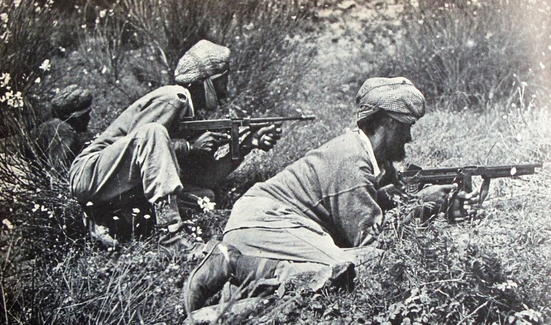 Foto n. 43, 44) Alcuni soldati indiani Sikhs, il primo è armato con il fucile SMLE Mk III*, gli altri con mitragliatori Thompson